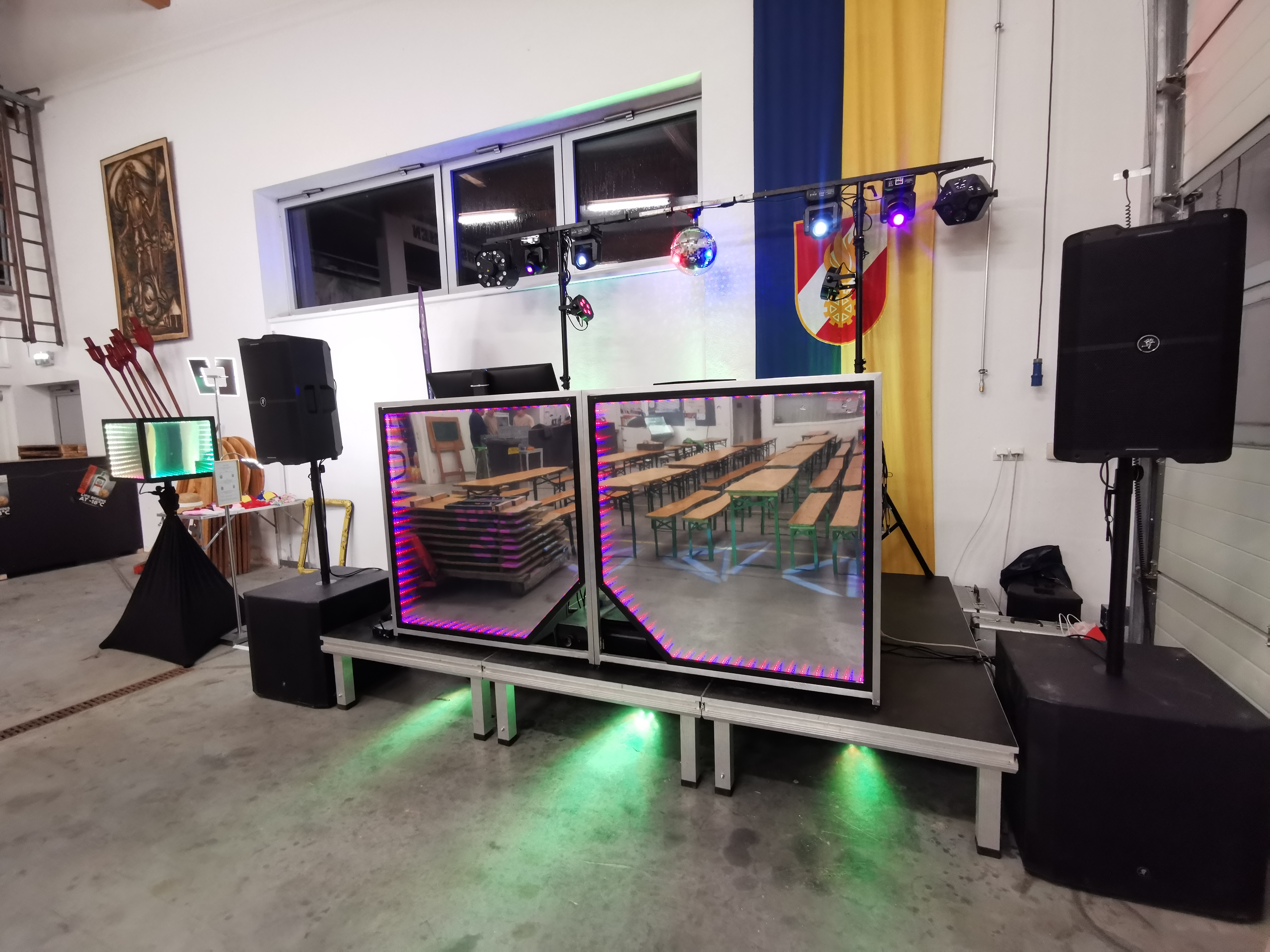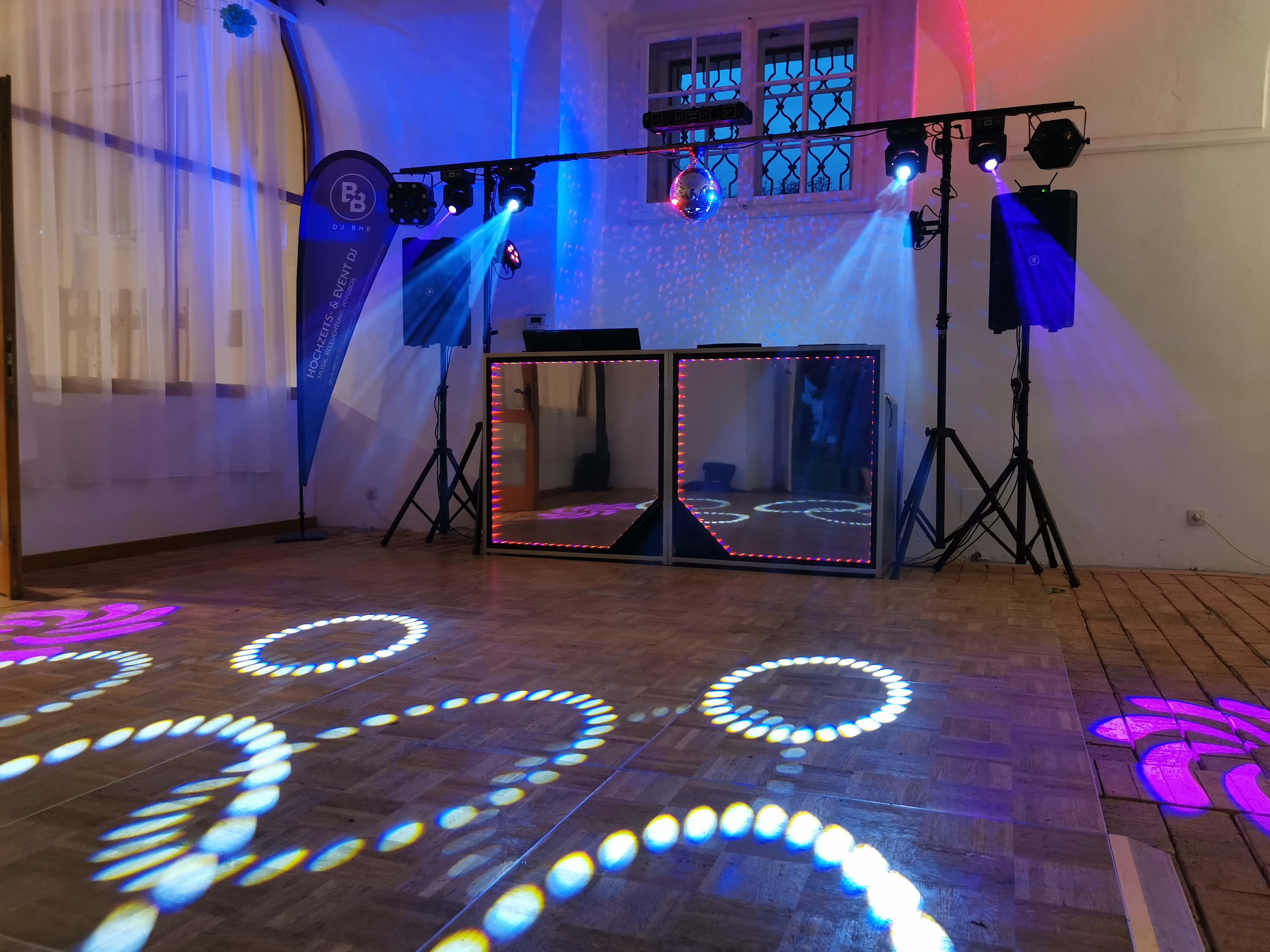 Ich haben mein eigenes Musik- und Licht-Equipment, das wir zu deiner Location bringen und aufbauen. Das heißt, egal, wo du feierst, wir kommen mit Sound und Light zu dir und passen uns der Location an.