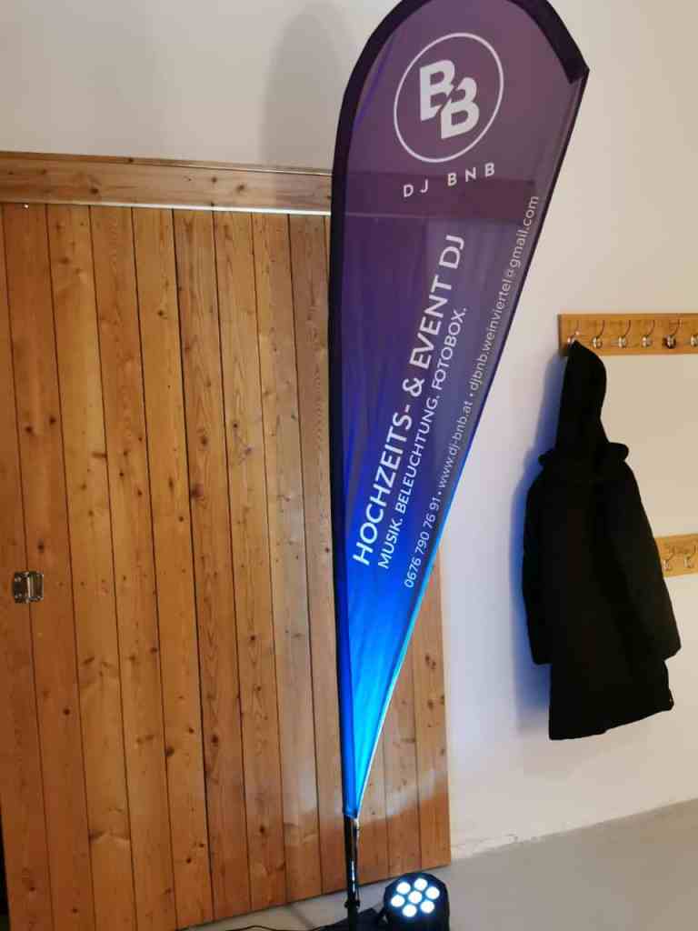 Die Werbefahne und Autobeschriftung wurde vom Team der Werbstatt persönlich designt, gedruckt und angebracht.