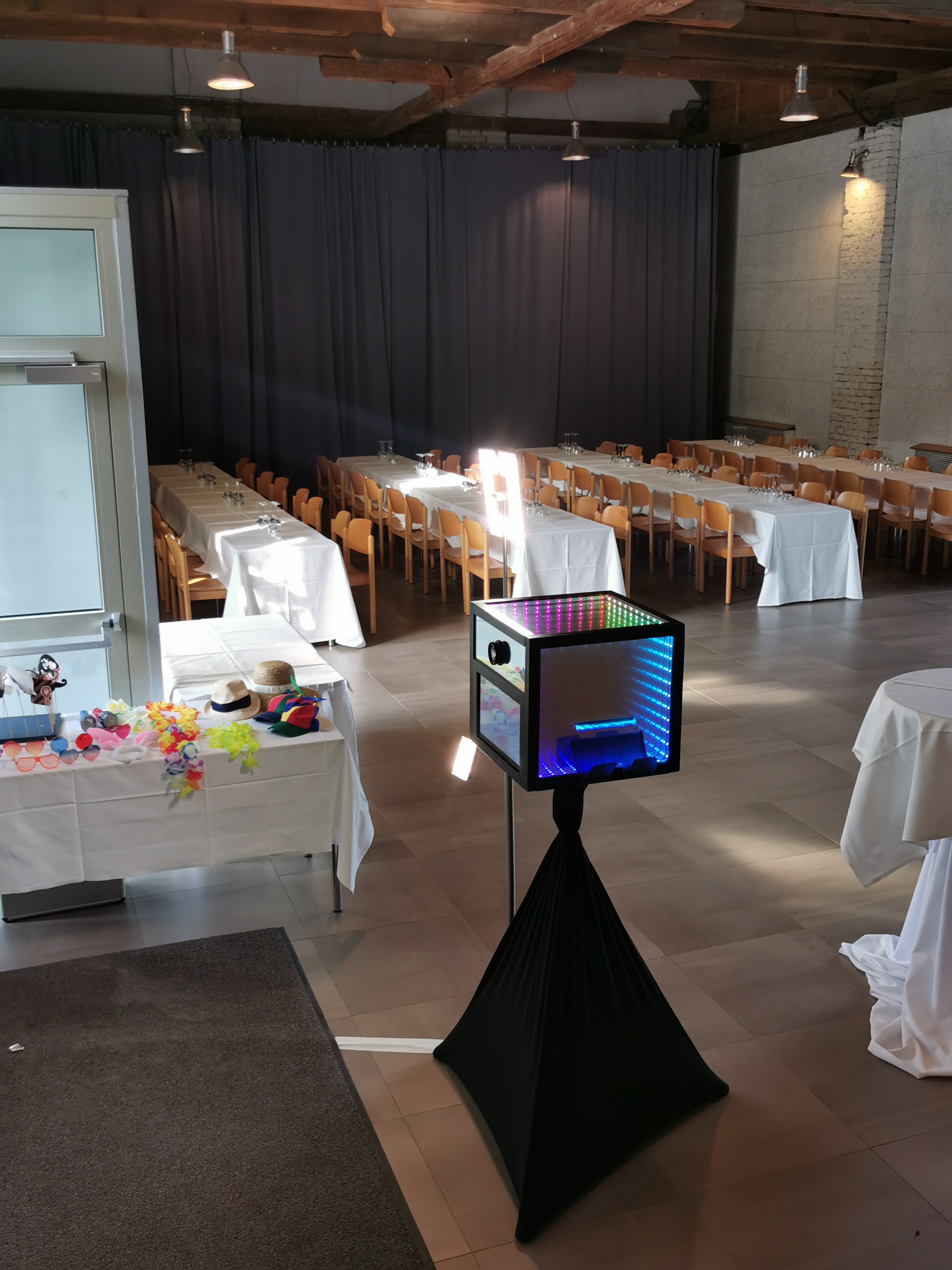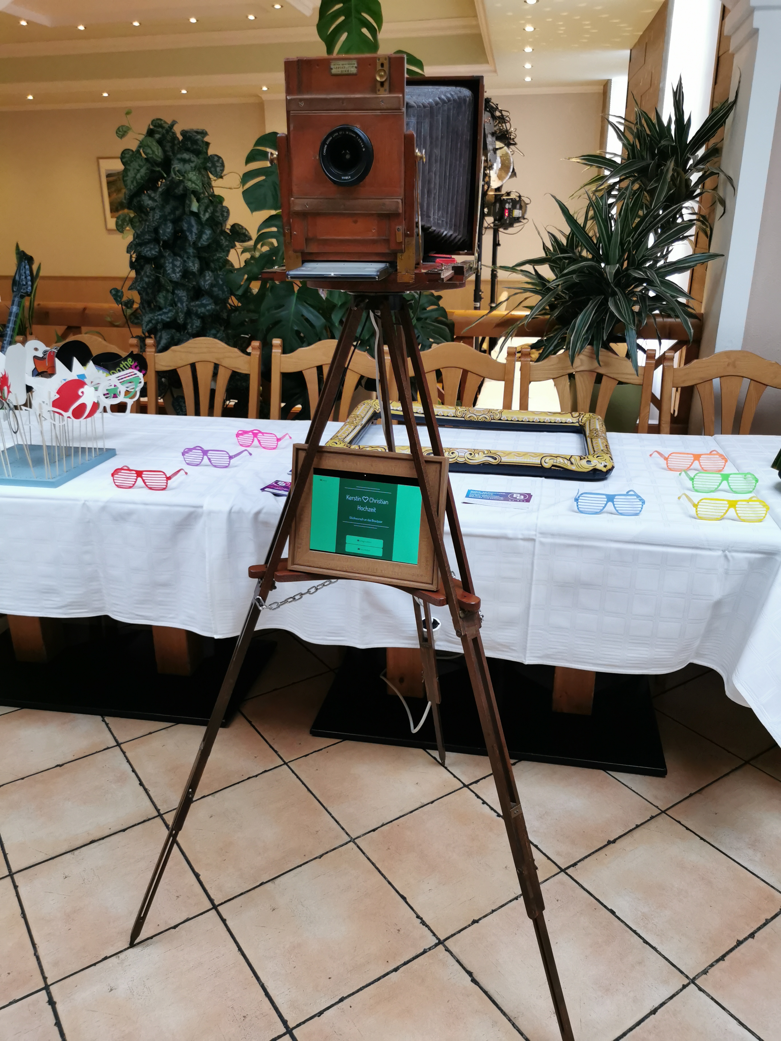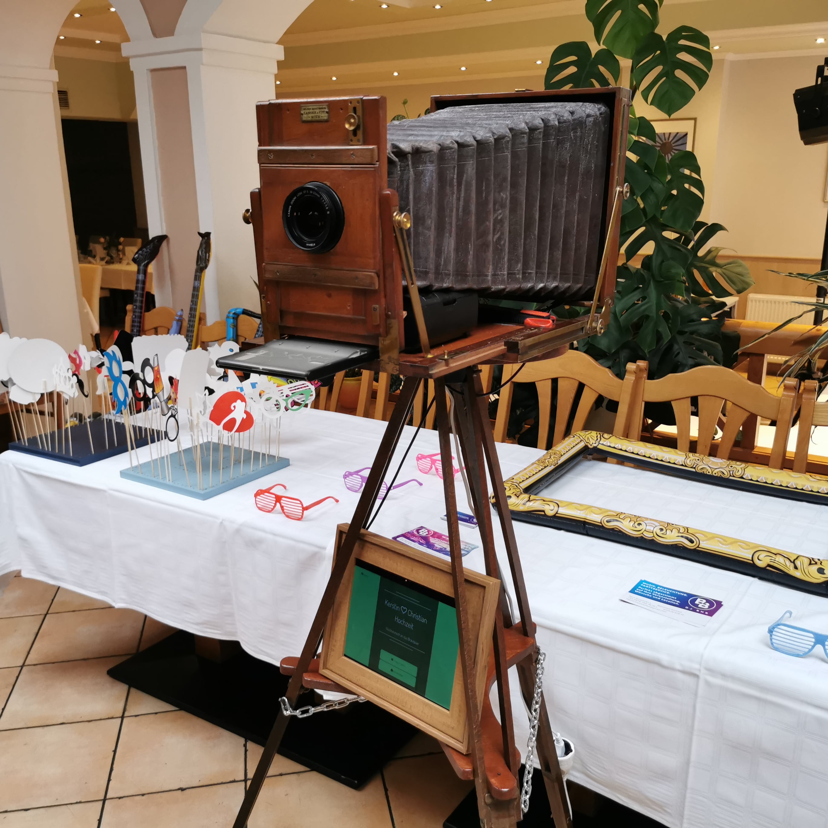 Aufgrund dessen, dachten wir uns, wir entwerfen einfach selbst eine Fotobox und bieten sie mit an.